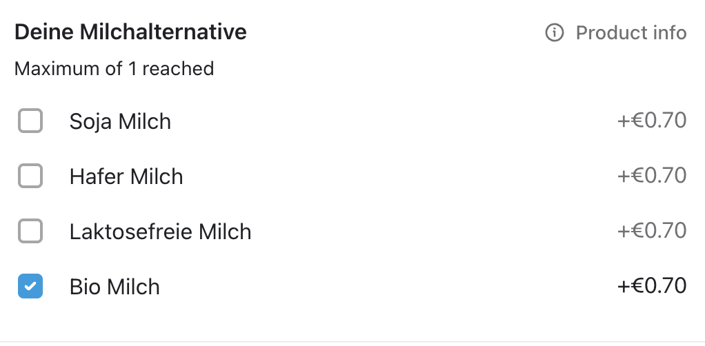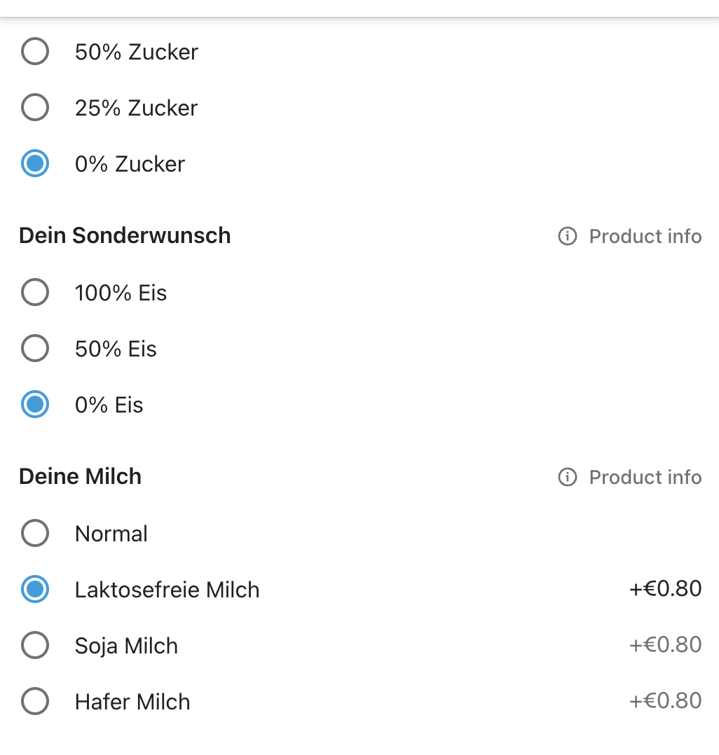 - “Lactose-free milk” upgrade: real milk ✓, no lactose ✓, costs more €€